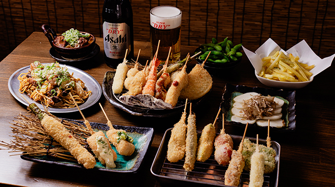 レトロな風情と大阪らしい活気の中、揚げたて串カツやお酒、おしゃべりを通じて、日々の疲れを癒すひとときと、思い出に残る時間を。